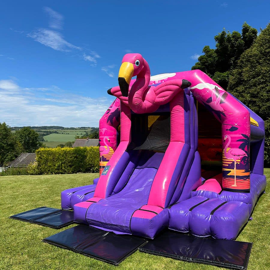 Make your event memorable with the 3D Flamingo Bouncy Castle with Slide. Reserve yours today and let us bring the fun to you! ๐ฅณ