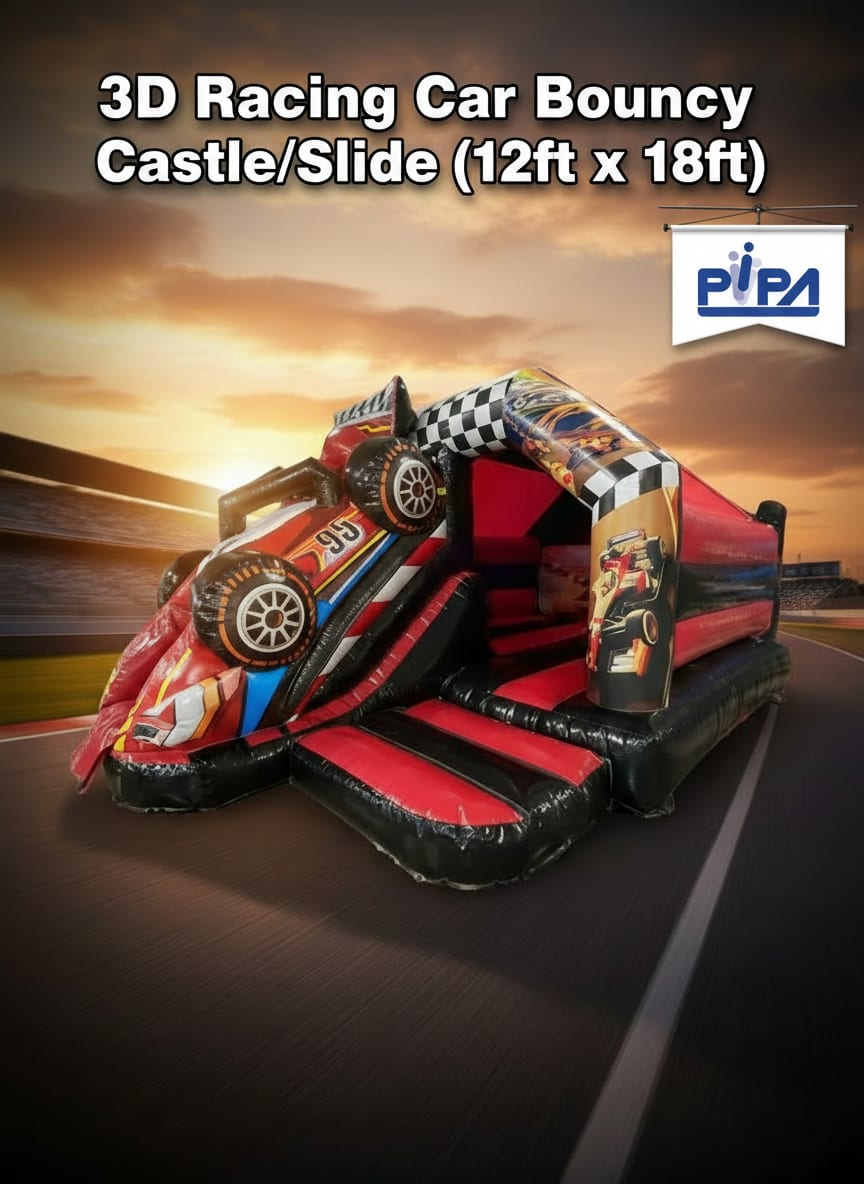 Bring high-octane fun to your next event with the 3D Racing Car Bouncy Castle/Slide (12ft x 18ft). Safe. Vibrant. Built to perform. Book or buy today and make your party the one everyone talks about! ๐