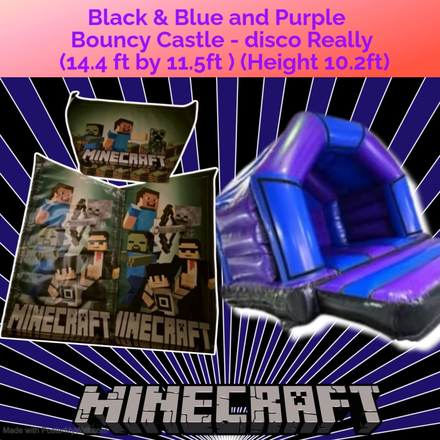 Make birthdays and events unforgettable with the Purple & Blue Castle (12ft by 14ft) - Minecraft Theme. Bright purple and blue blocks evoke the pixelated world kids love. Durable vinyl. Safe design. Big bounce area. Instant wow factor. Perfect for themed parties, community events, and school fun. ๐