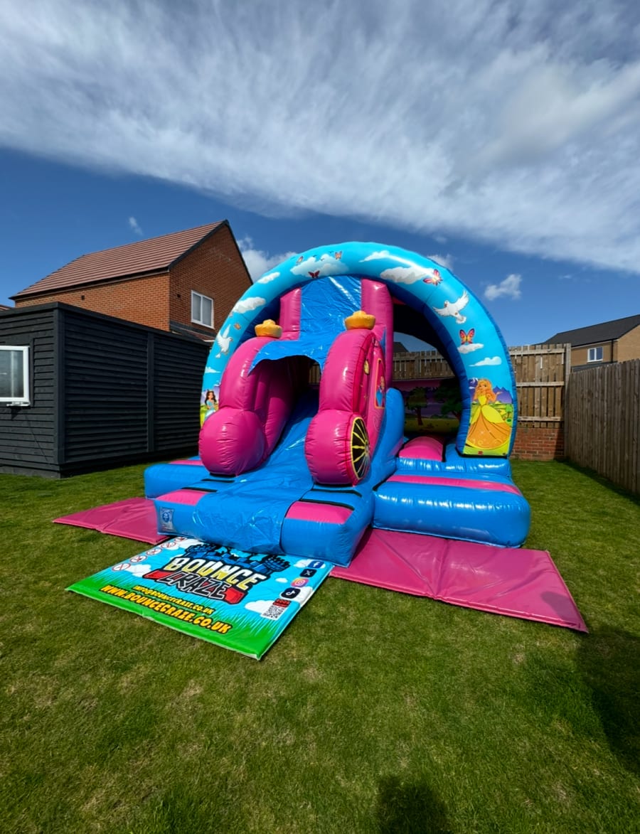 Bring fairy tale magic to life with our 3D Princess Bouncy Castle with Carriage Slide! Measuring an impressive 14ft by 16ft, this enchanting inflatable promises hours of regal fun and excitement for children of all ages. With its vibrant colors and captivating 3D princess design, it’s a dream come true for any young royalty.