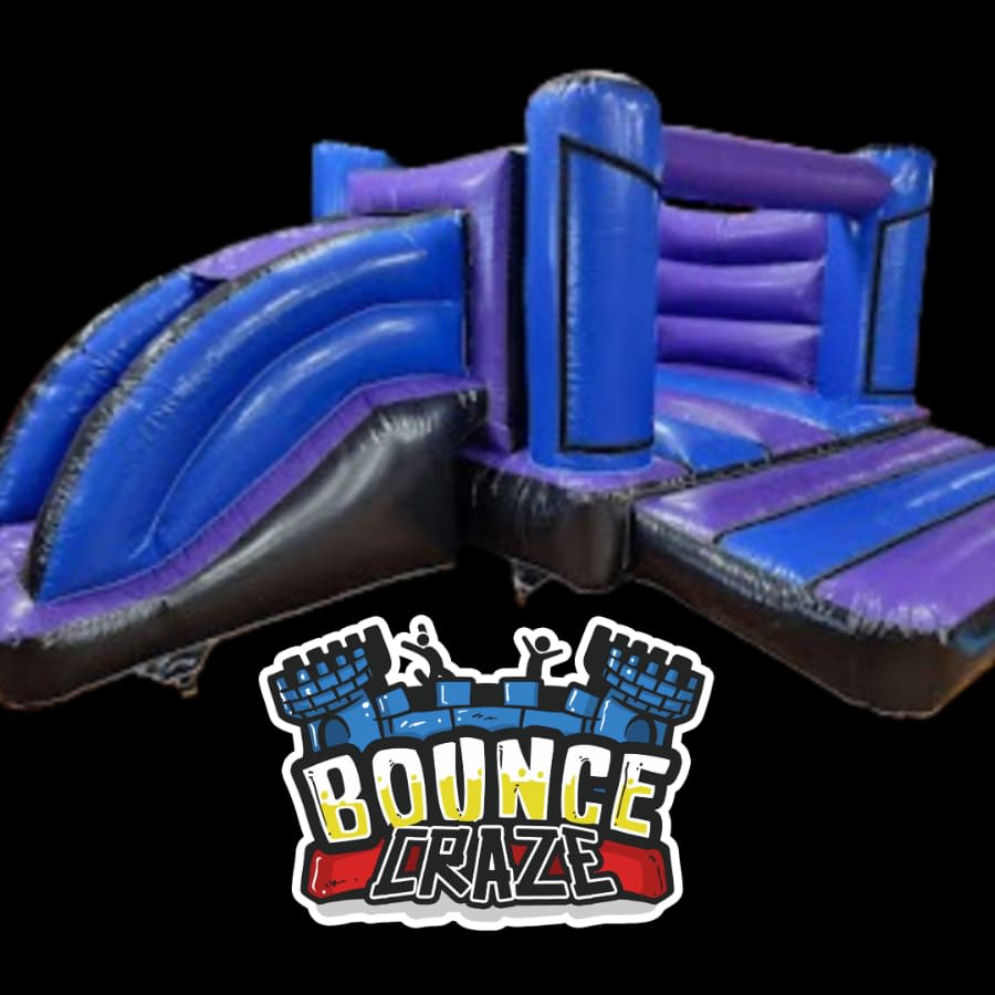 Bring instant magic to your party with the Purple & Blue Castle with low slide (14ft by 18ft) - Disney Stitch Theme -. Bright purple and blue colors. A low slide for younger kids. Large bounce area for safe play. Perfect for birthdays, backyard parties, school events, and community fairs. ๐๐ฐ