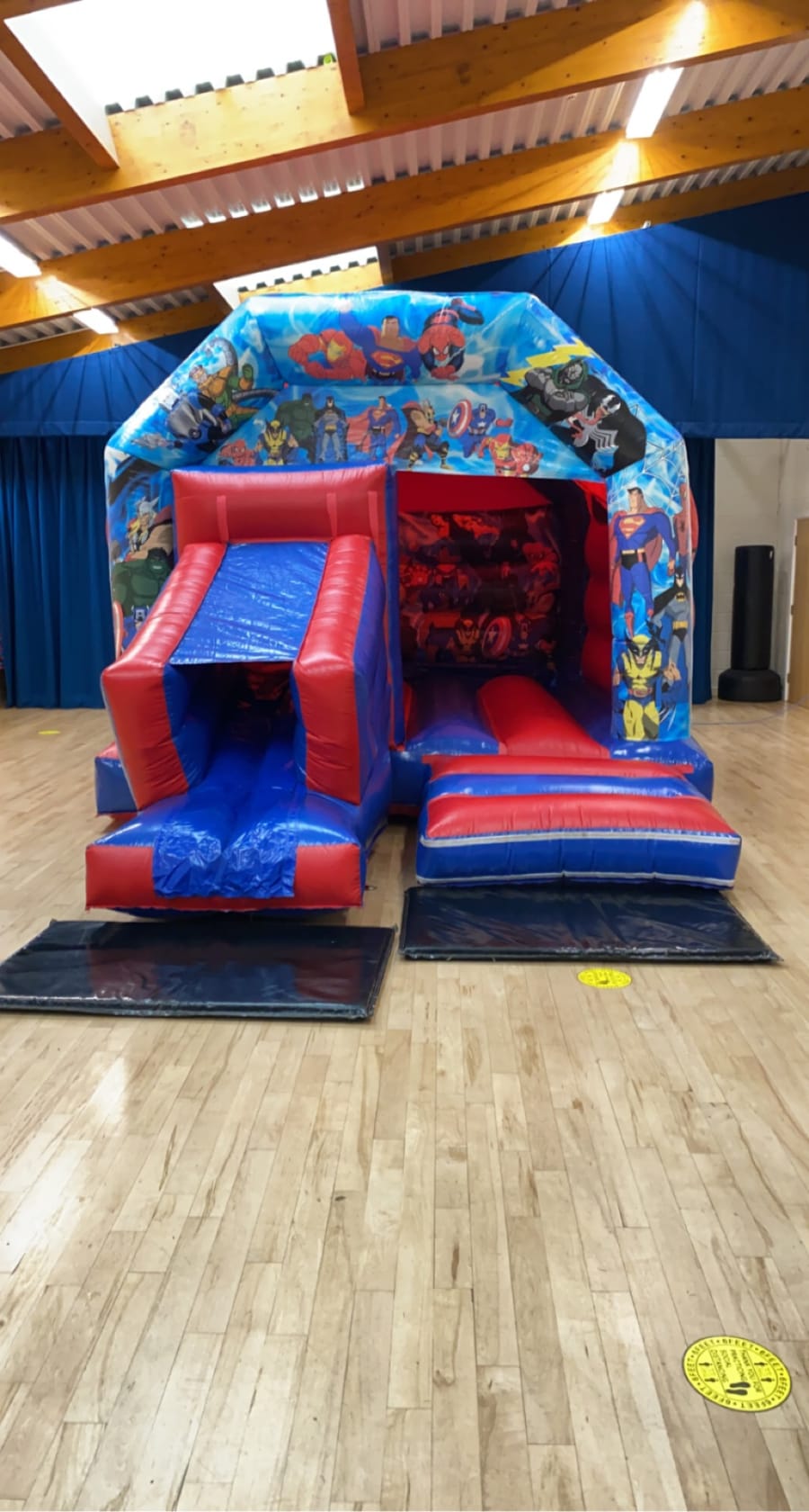 Not only do you get the huge superhero adrenaline rush of a slide you also get 12ft by 17ft of gravity defying fun inside, where kids can leap around like their heroes, surrounded by the best, including Superman, Batman, Iron Man, Spiderman and even the Incredible Hulk.